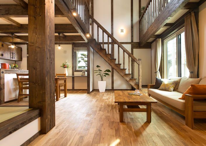 サイエンスホームの魅力は、木の骨組みをあえて見せる「真壁づくり」。