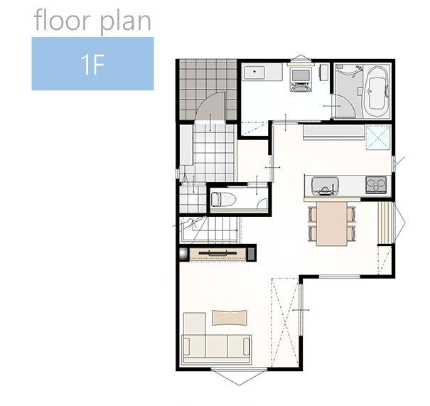 敷地の南側に広いスペースを確保したのでBBQや家庭菜園などにお使いいただけます。 ダイニング・リビングに背の高い窓を設置し、またリビングには一部吹抜を設けたことでLDK全体に光が行き届く間取りになっております。 ダイニング後ろにはカウンターを付けることでお子さんの勉強スペースや在宅ワークなどをする際に便利です。 また1・2階どちらにもトイレを設置しているので、混雑するような時間帯や夜中にも安心してご利用できます。 2Fのフリースペースは吹抜の窓から直接日が入ってくるため洗濯物やお布団を干すのに最適なスペースとなっております。