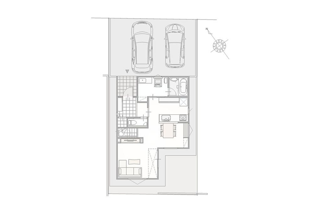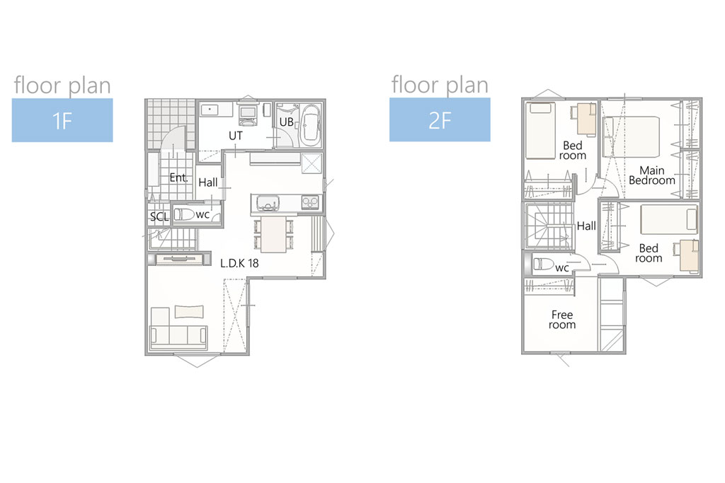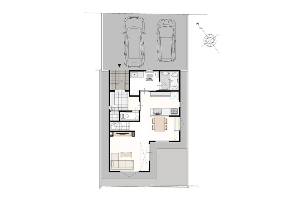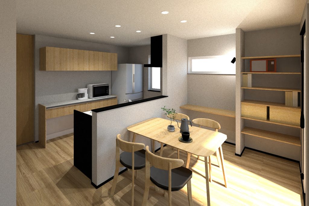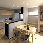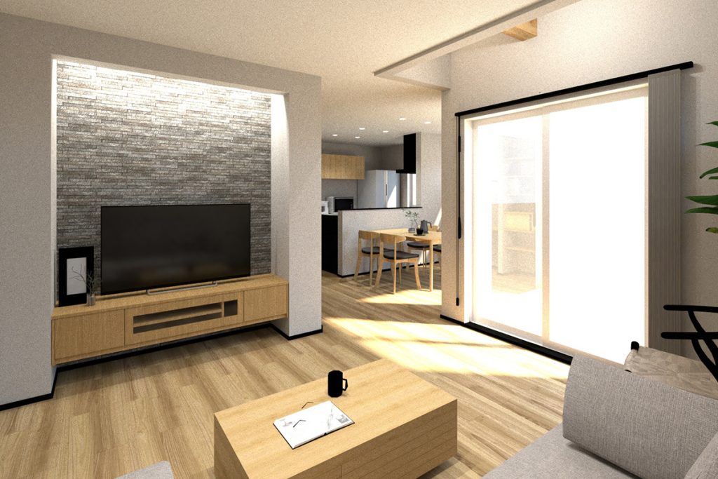 敷地の南側に広いスペースを確保したのでBBQや家庭菜園などにお使いいただけます。 ダイニング・リビングに背の高い窓を設置し、またリビングには一部吹抜を設けたことでLDK全体に光が行き届く間取りになっております。 ダイニング後ろにはカウンターを付けることでお子さんの勉強スペースや在宅ワークなどをする際に便利です。 また1・2階どちらにもトイレを設置しているので、混雑するような時間帯や夜中にも安心してご利用できます。 2Fのフリースペースは吹抜の窓から直接日が入ってくるため洗濯物やお布団を干すのに最適なスペースとなっております。