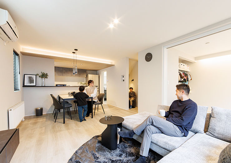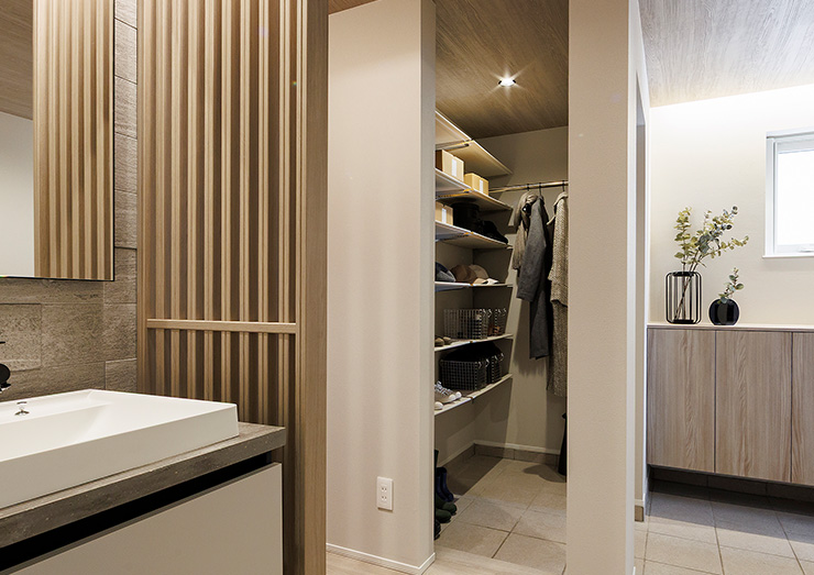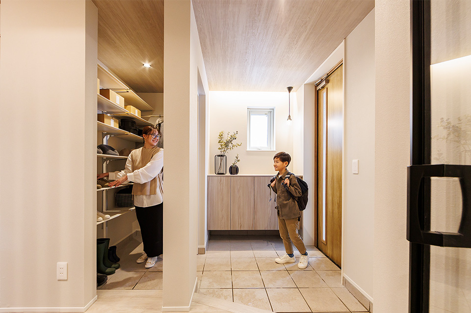 季節の訪れや、子どもの成長に合わせて変化できる収納から、子育てママに嬉しい効率的な家事動線まで、暮らしに寄り添う工夫が詰まった住まいです。 キッチン、ユーティリティー、クローゼットなど、暮らしの動線に合わせて収納があると、あら、不思議。家の中を動くだけで、自然と片付いていきます。 ホテルライクで片づく設計により、余計なモノが視界に入らず、毎日の暮らしがすっと整う感覚を味わえるでしょう。 モノが使う場所で活かされる仕組みを最初から描くことで、上質さが日常になる住宅“ラクいえ”が完成します。
