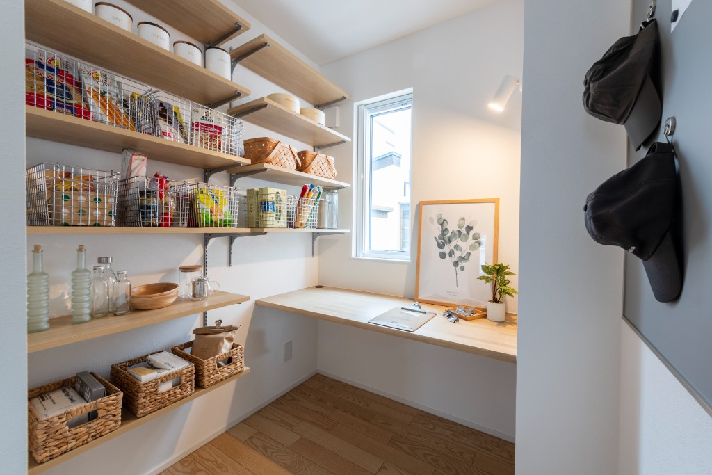 キッチン横には家事スペースや書斎として多目的に使用できるスペースを確保いたしました。