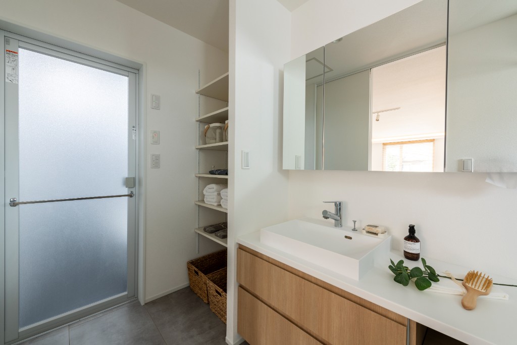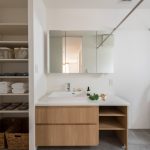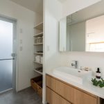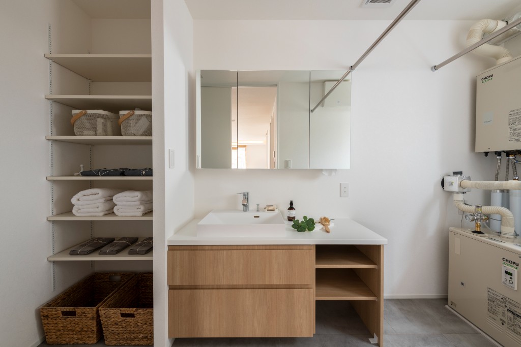 ユーティリティは4帖とかなりゆとりあるスペースとなっており、パジャマや下着類等も収納できる形となっております。