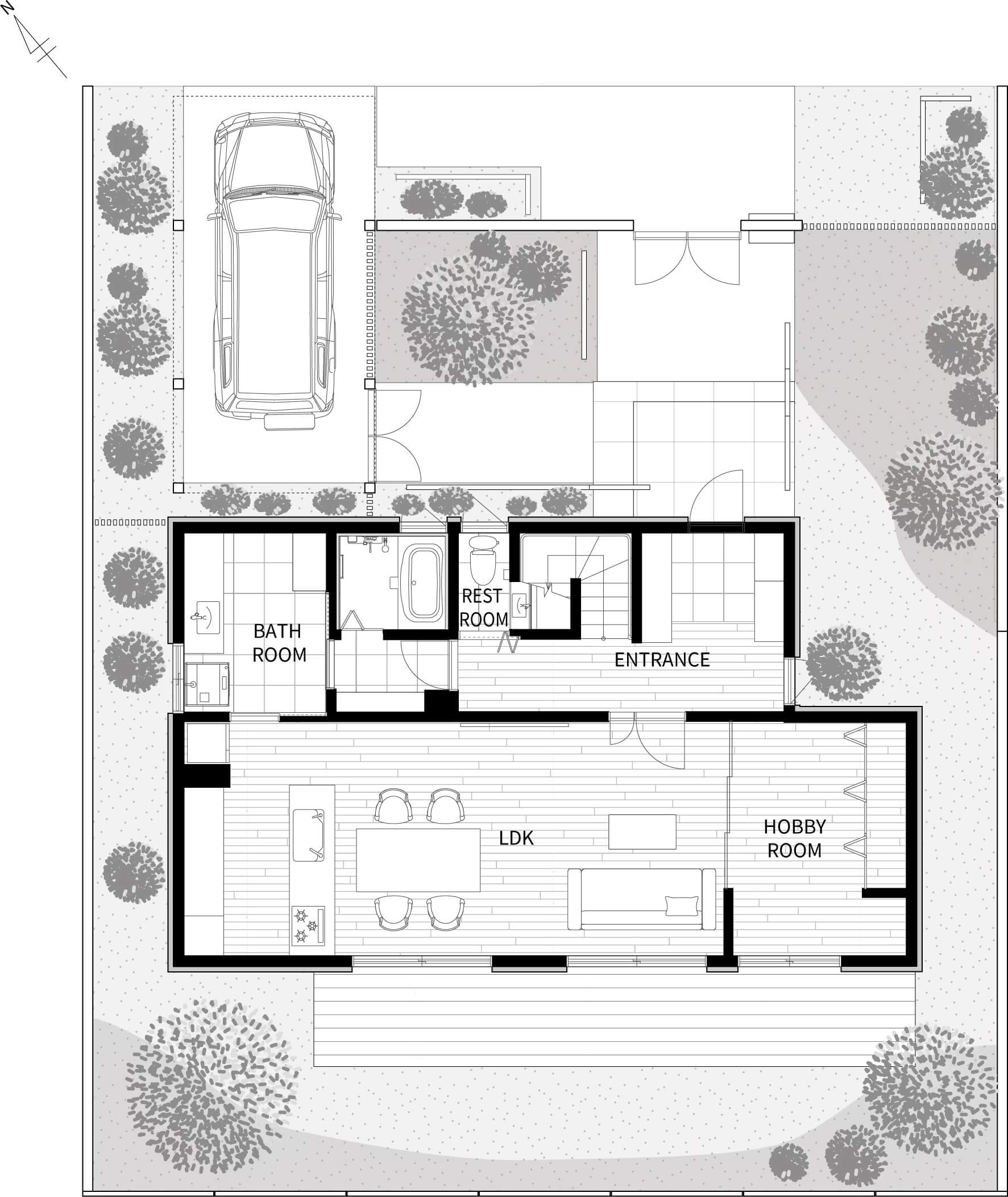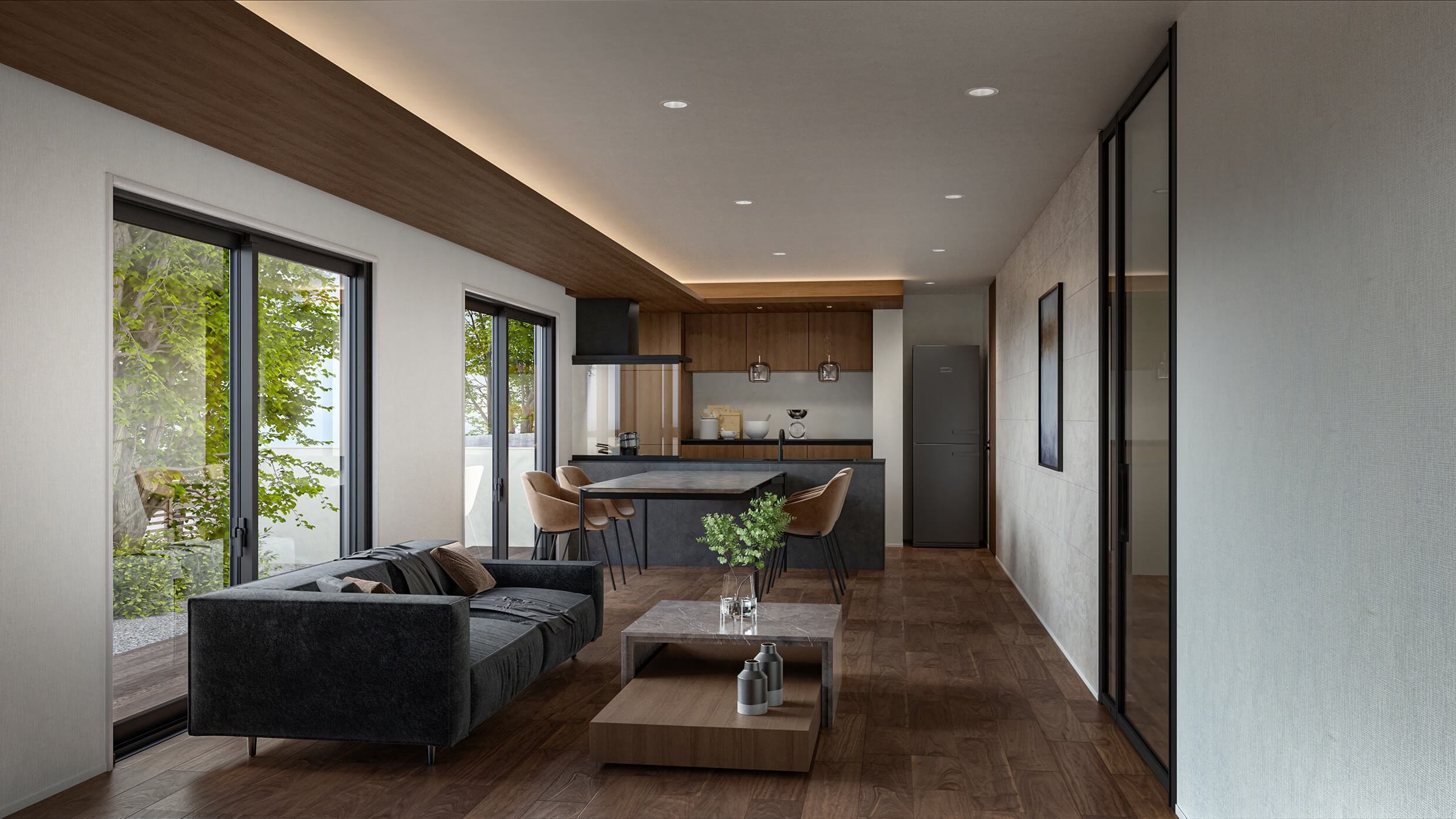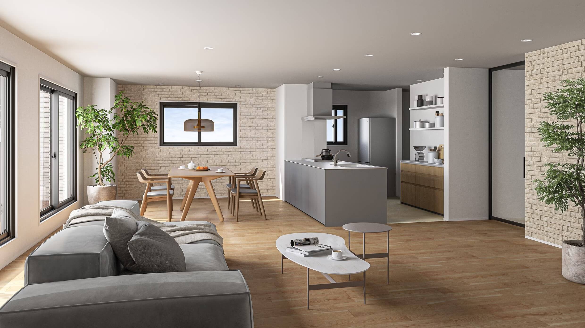 ヌックや広い土間空間で、家族の居場所が広がります。
