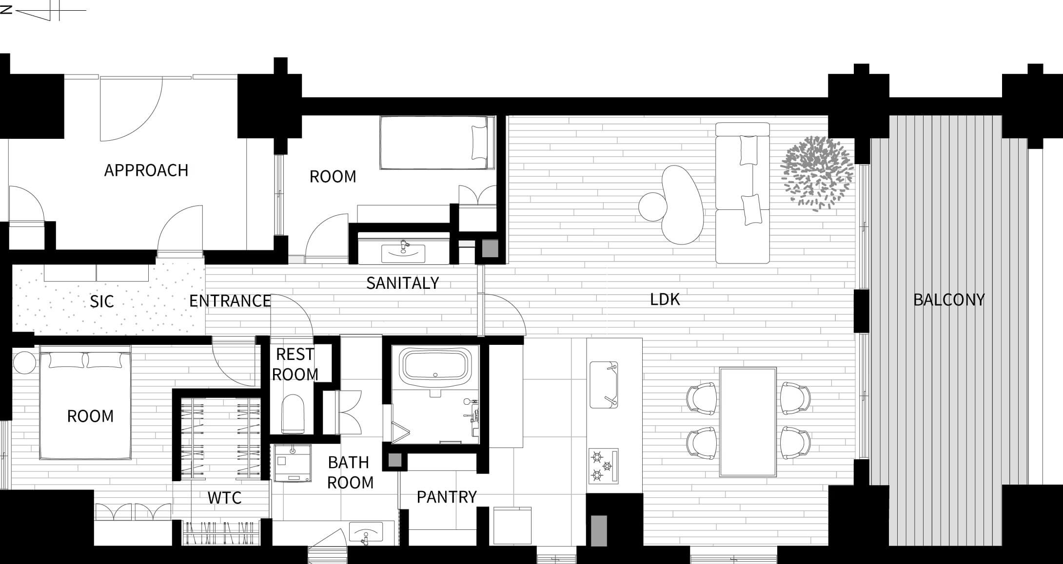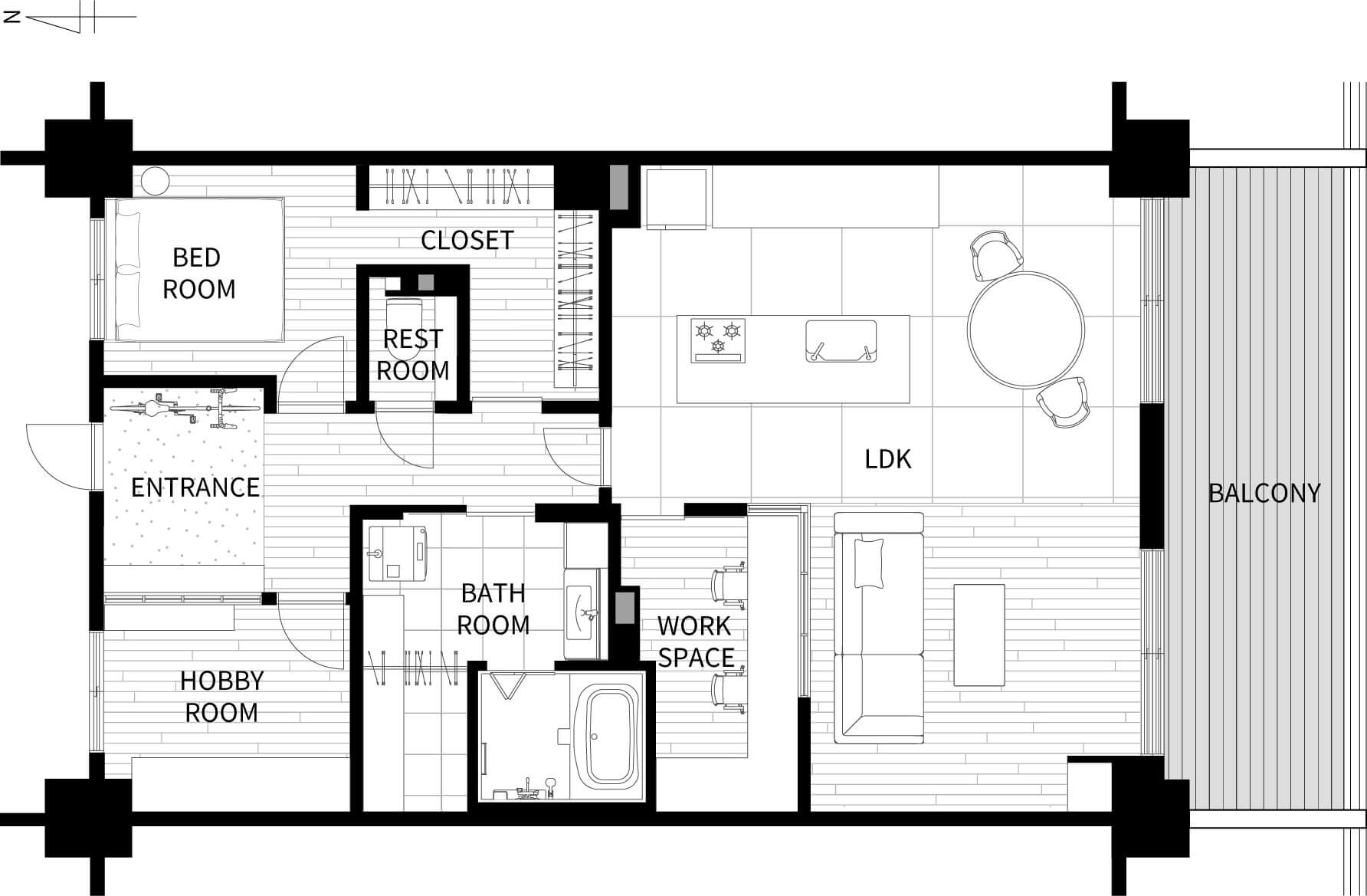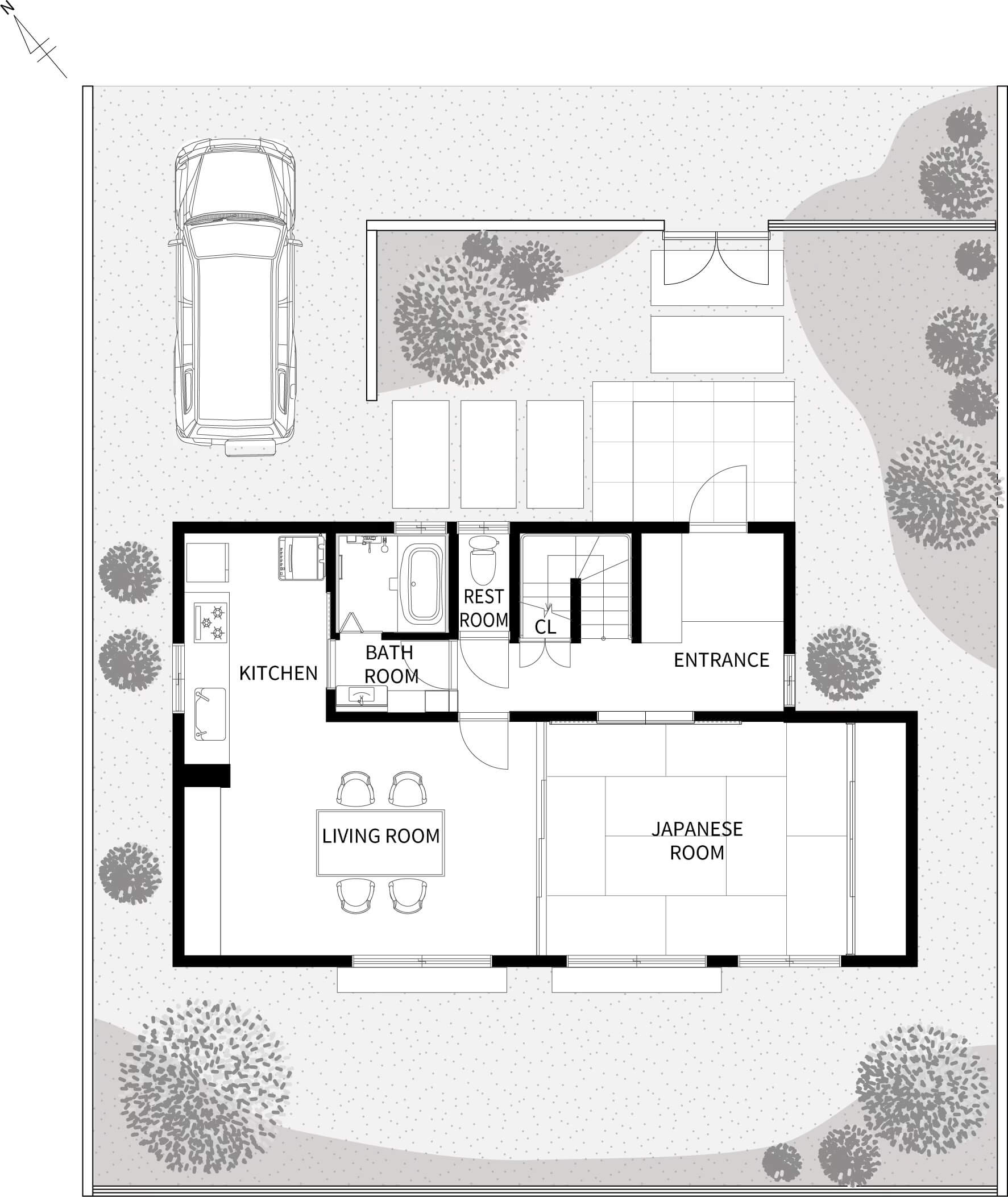 ヌックや広い土間空間で、家族の居場所が広がります。