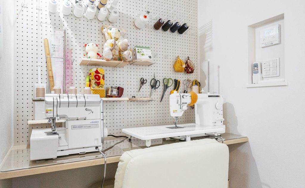 また、キッチンのすぐそばに設けた裁縫用のスペースは、ミシンはもちろん必要な道具が取り出しやすく使いやすく設計されています。