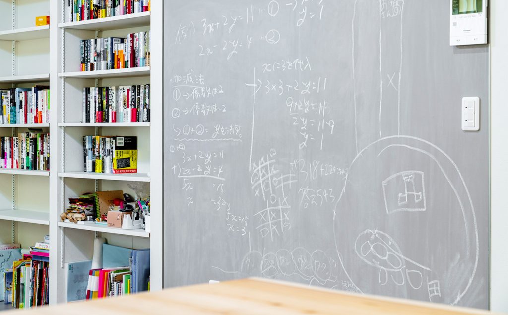 その象徴となるのが、リビングに設けたチョークボードの壁です。