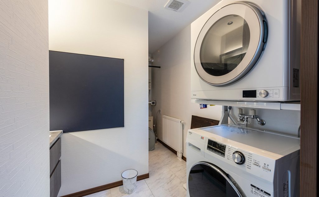家事動線においては、ガス衣類乾燥機「乾太くん」を導入し、天候に左右されない洗濯環境を実現。