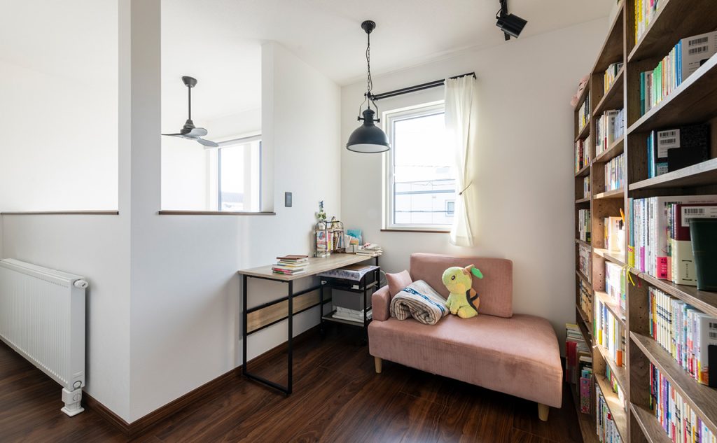 南向きに配置された大きな窓からは自然光がたっぷりと降り注ぎ、日中は照明がいらないほどの明るさが室内を包み込みます。